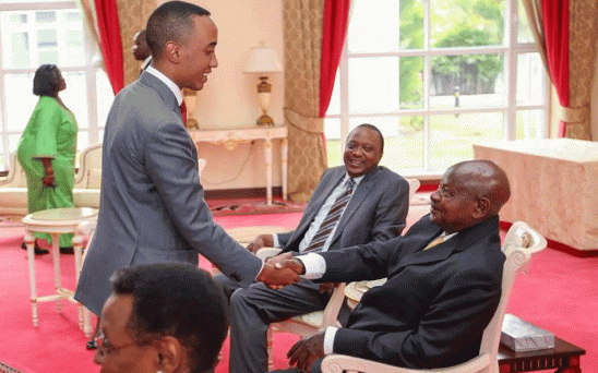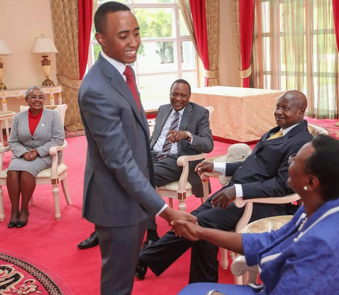 President Uhuru Kenyatta’s son Muhoho’s encounter with President Yoweri Museveni has become a major talking point among Ugandans for the unlikeliest of reasons – a simple handshake.